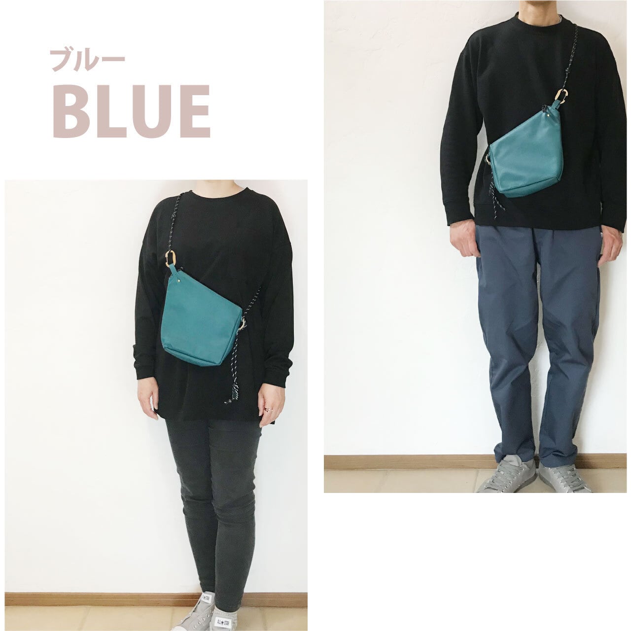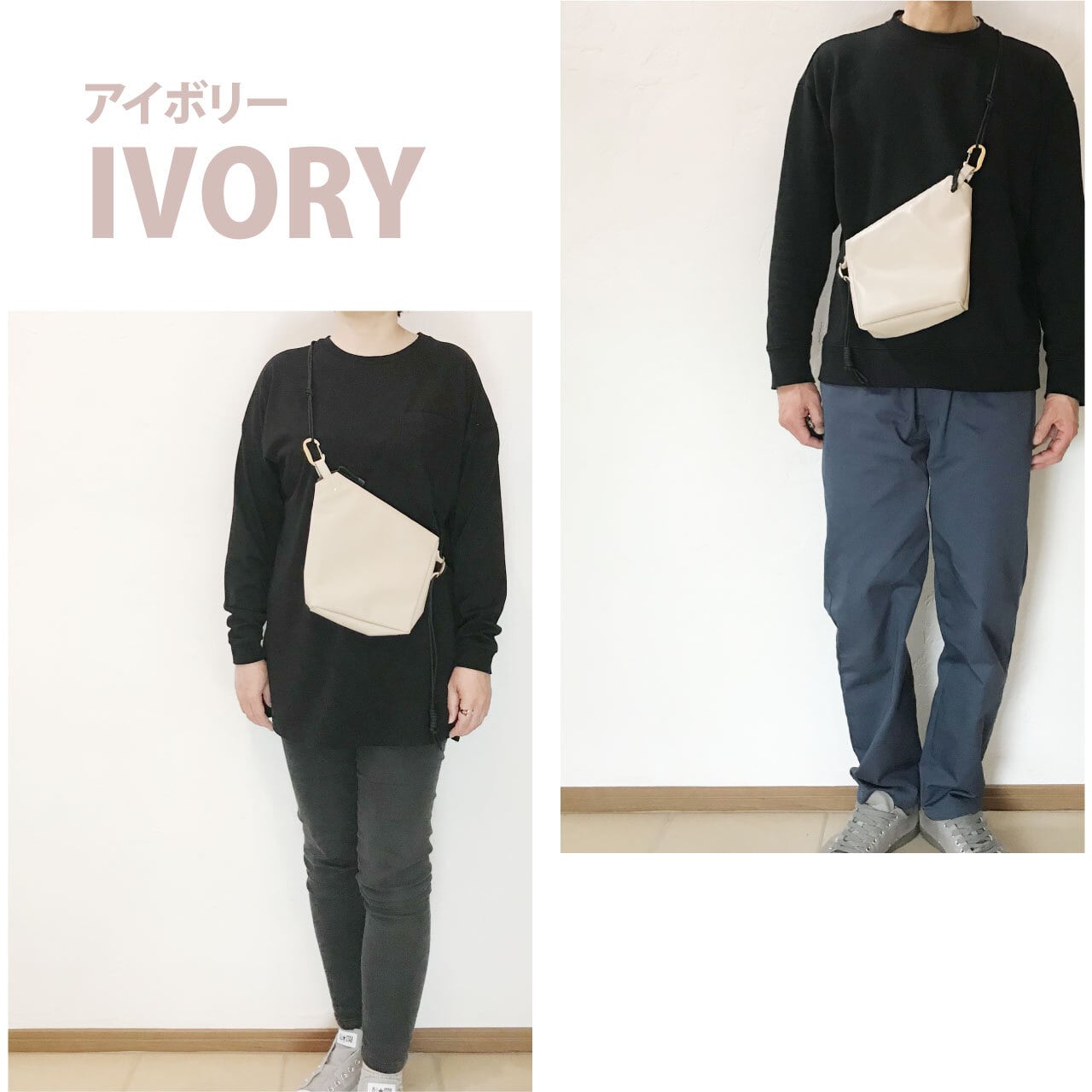 防水レザーとアシンメトリーデザインが特徴のサコッシュ。